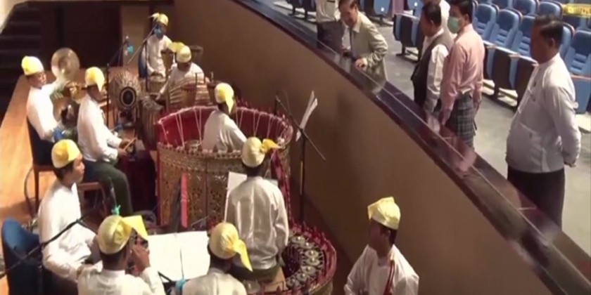 Union Minister for Religious Affairs and Culture U Ko Ko, Deputy Minister Dr Moe Zaw Tun and officials observed rehearsal of “Dignity is nobler than Life" dramatic show performed by the Fine Arts Department of the Ministry of Religious Affairs and Culture, arrangements for recording, lighting and setting for the show at the National Theatre in Yangon on Tuesday.
