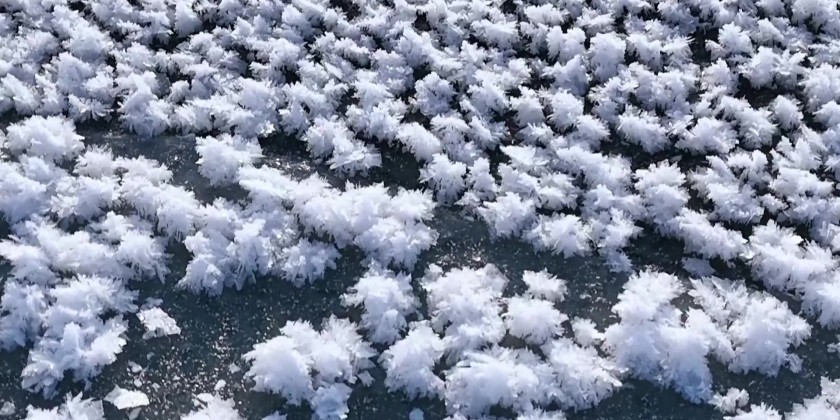 In recent days, plummeting temperatures have given rise to intricate patterns of frost resembling beautiful flowers on the frozen expanse of the Bosten Lake in northwest China’s Xinjiang Uygur Autonomous Region.