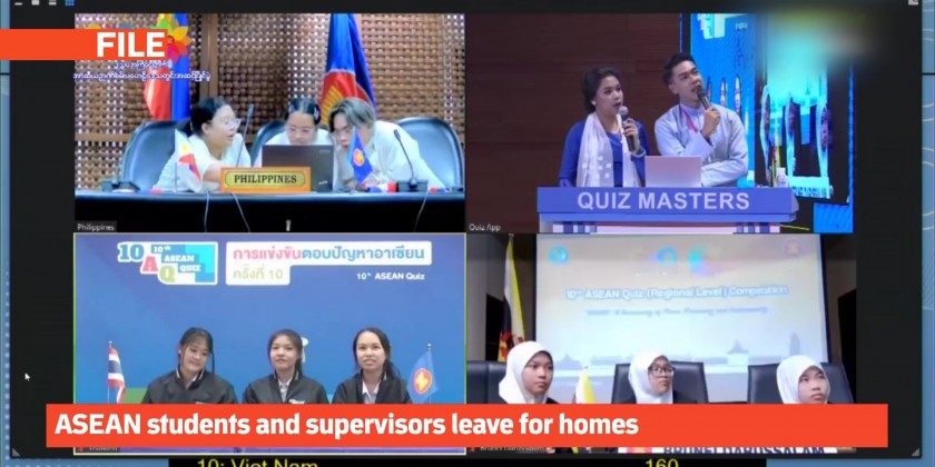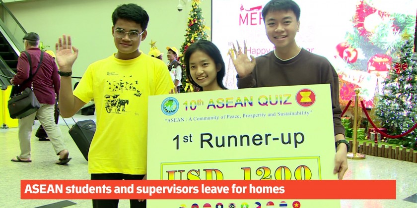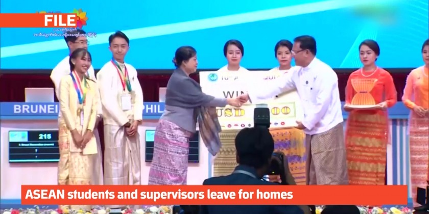 Students, supervisors and coaches from ASEAN member states and representatives of the ASEAN Secretariat left for their respective countries via Yangon International Airport on Friday after attending and participating in the 10th ASEAN Quiz (Regional Level) hosted by Myanmar.