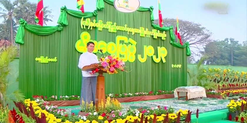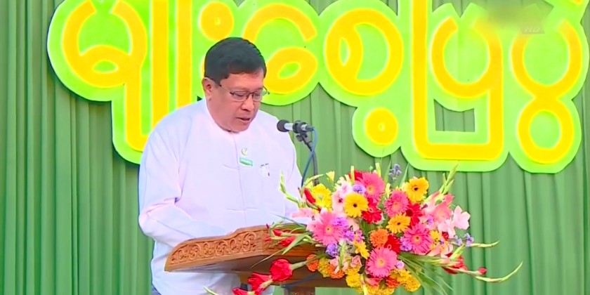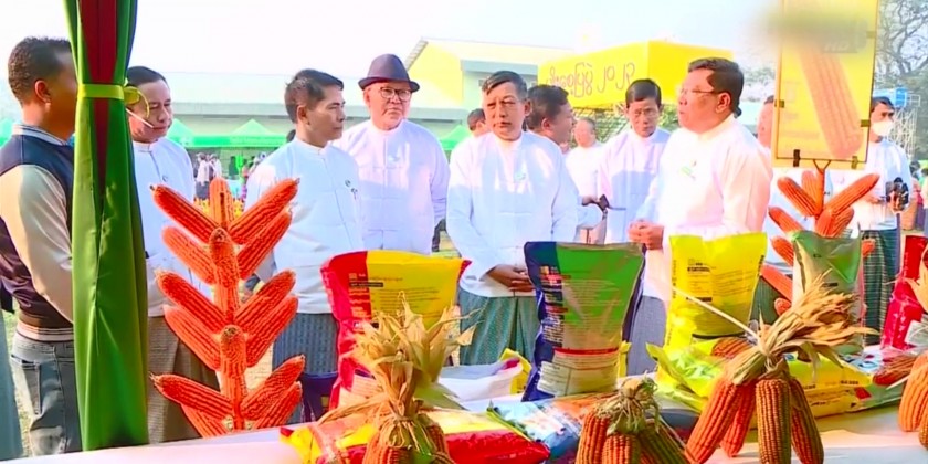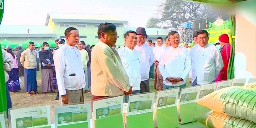 The Union Minister for Agriculture, Livestock and Irrigation U Min Naung addressed an opening speech at the opening ceremony of “Seed Fair 2023” held at the compound of Agricultural Institute of Pyinmana Township in the morning on February 9 in honoring the 76th Union Day.