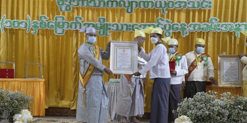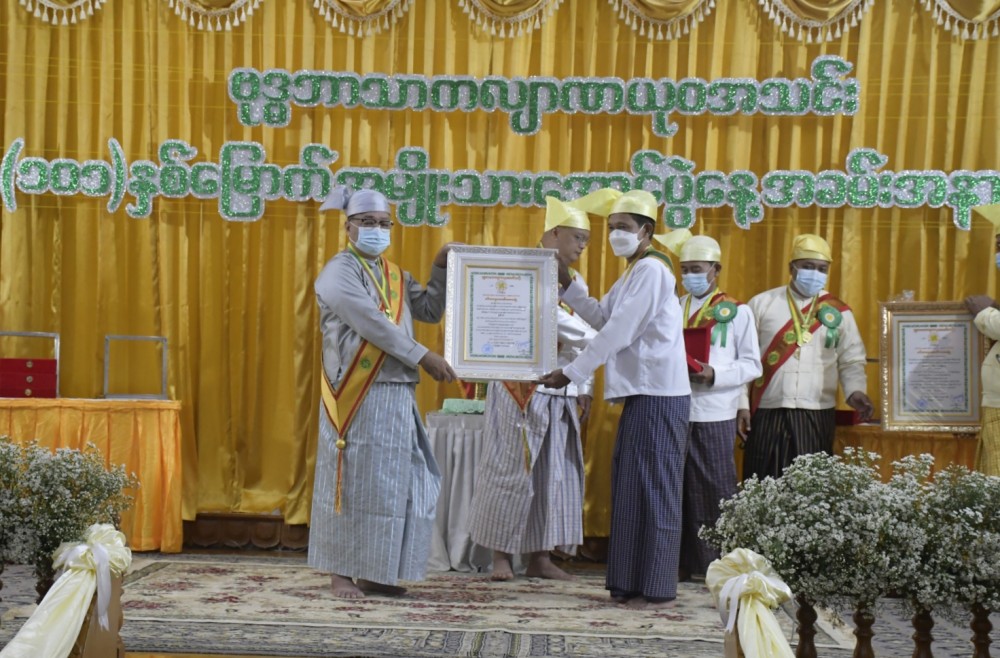 Chairman of YMBA (Central) Agga Maha Mingala Dhamma Jotikadhaja U Ye Tun talked about the victory of National Victory Day and presented medals. The ceremony followed announcement of the executive committee member list for 2022-2024 and affirmation. U Ye Tun, reelected as Chairman of YMBA (Central), extended greetings. The ceremony ended with singing the Zartiman song.