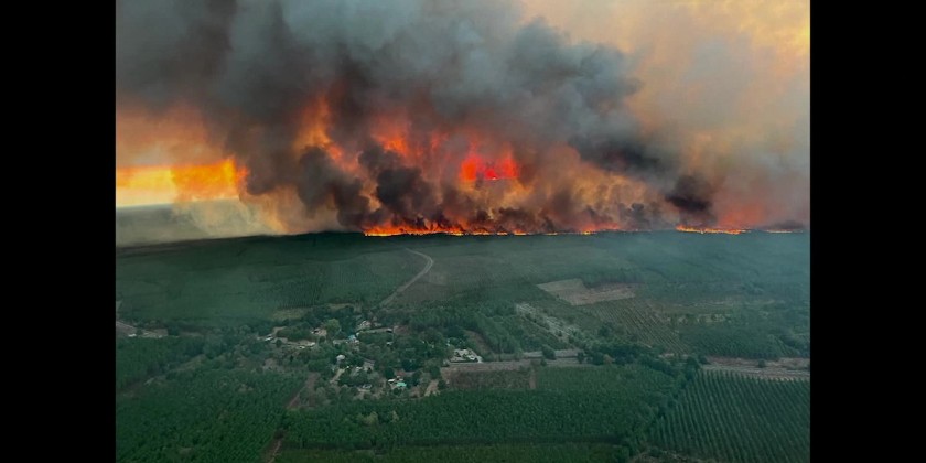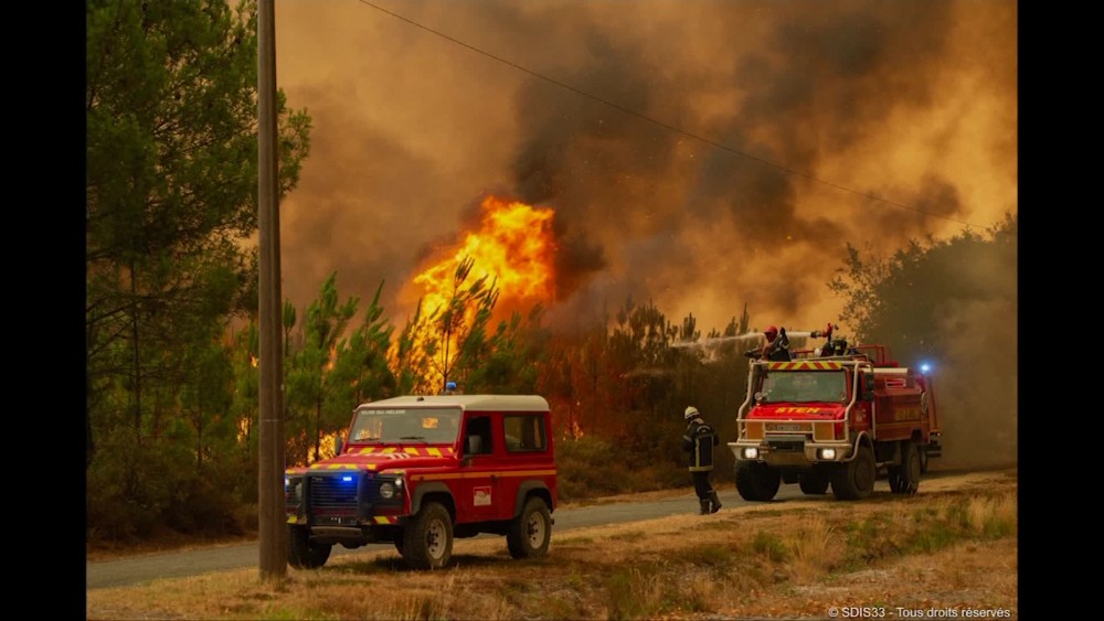 More than 6,200 hectares have burned in the Gironde region and the neighbouringLandes in the latest wildfire to erupt in a European nation as the continent swelters through a hot and dry summer. The blaze forced the evacuation of about 10,000 people and destroyed at least 17 houses, according to firefighters. A major highway near the city of Bordeaux was closed on Wednesday afternoon due to the fire raging nearby. French Interior Minister Gerald Darmanin announced that more firefighters have been sent to the site in an effort to contain the fire. In total, more than 1,000 firefighters, nine aircraft and two helicopters have been mobilized, he said. The Gironde region was hit last month by major wildfires that forced the evacuation of more than 39,000 people, including residents and tourists.