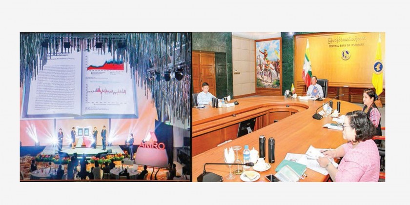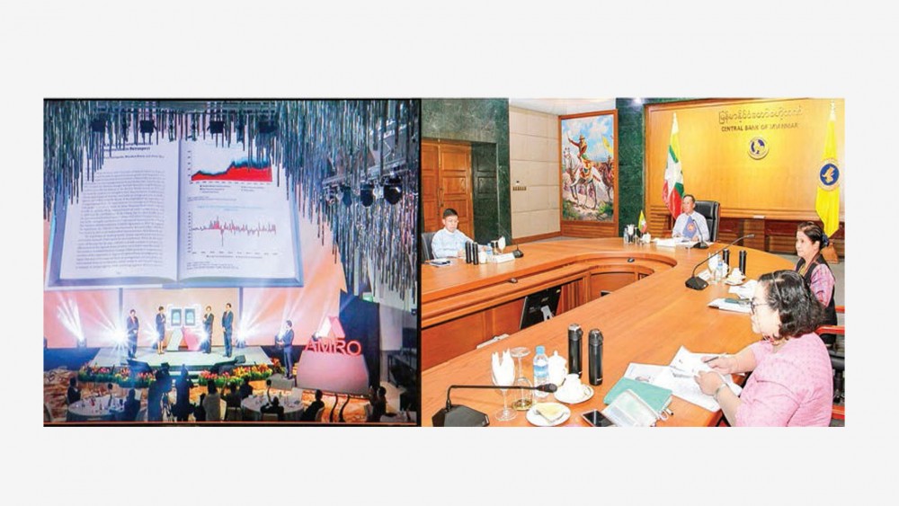 The ASEAN + 3 Macroeconomic Research Office (AMRO) hosted AMRO’s 10th Anniversary Celebration Event through a videoconference Tuesday afternoon. Governor of the Central Bank of Myanmar U Than Nyein, Deputy Governors U Win Thaw and Daw Than Than Swe and officials from the Central Bank of Myanmar attended the event.