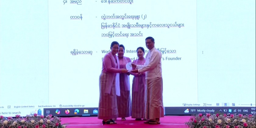 After that, the honorary patrons of Myanmar Women and Children Development Foundation Daw Kyu Kyu Hla and Daw Khin Thet Htay and Chairman of Myanmar National Committee for Women’s Affairs Union Minister for Social Welfare, Relief and Resettlement Dr. Soe Win awarded the prizes to the prize winners.