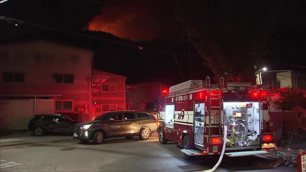 A wildfire that broke out on Hamjisan mountain in Daegu, South Korea on Monday quickly spreads to a nearby residential area due to strong winds, prompting residents' evacuations. The desperate efforts to put out the fire continued well into the night.