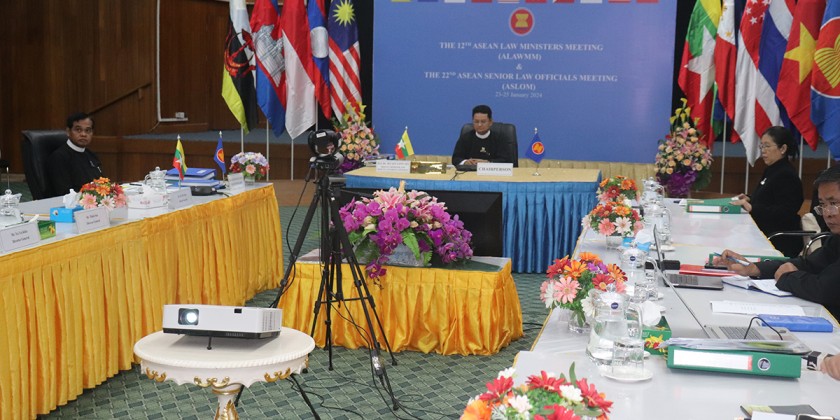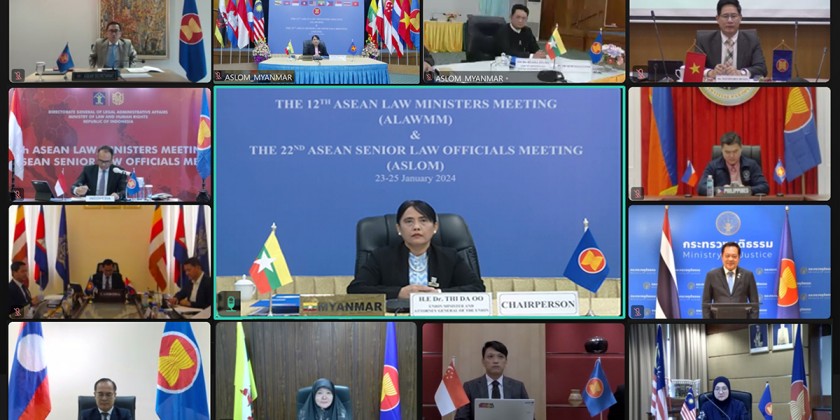 12th ASEAN Law Ministers Meeting (ALAWMM) and the 22nd ASEAN Law Officials Meeting (ASLOM) hosted by Myanmar were held via video conference from January 23 to 25 in 2024. During those two Meetings, Union Minister and Attorney General of the Union, Dr. Thi Da Oo conducted as the chairperson in 12th ALAWMM and Deputy Minister and Deputy Attorney General, Dr. Htain Linn Oo acted as the chairperson of the 22nd ASLOM respectively.