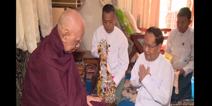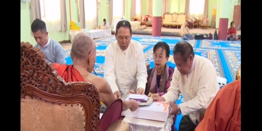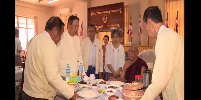 Earlier in the day, the Union Minister and party paid respect to the Secretary of the State Sangha Maha Nayaka Committee Dr BhaddantaCandimaBhivamsa at Maha Nayaka Monastery and offered 3 million kyats cash donation.