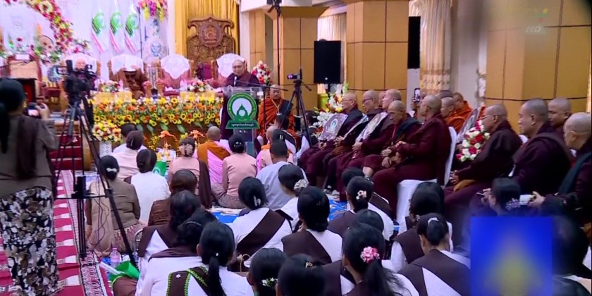 The ceremony was attended by State Ovadacariya, Sangha Raja of Shwe Kyin Sect, Chancellor of Sitagu International Buddhist Academy Abhidhaja Maha Rattha Guru, Abhidhaja Agga Maha Saddhamma Jotika, Agga Maha Pandita, Sitagu Sayadaw Baddhanta Nanissara, Sayadaws and members of Sangha, Yangon Region Chief Minister U Soe Thein, region ministers and Dhamma school teachers.