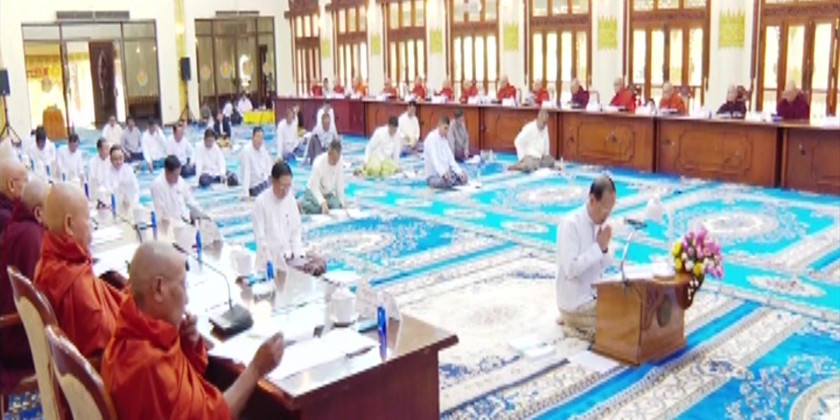 The State Sangha Maha Nayaka Committee Secretary Sayadaw recited SaraniyaOvada Gatha to start the meeting. Then, Union Minister U Ko Ko presented matters related to religious affairs.
