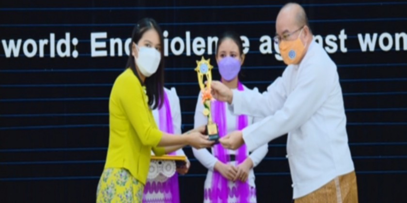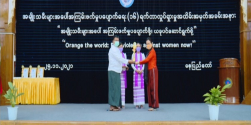 Myanmar National Committee for Women's Affairs commemorates on 16 day campaign for elimination of violence against women on Thursday at the ministry of social welfare, relief and resettlement with two section including presence in person and online participation.