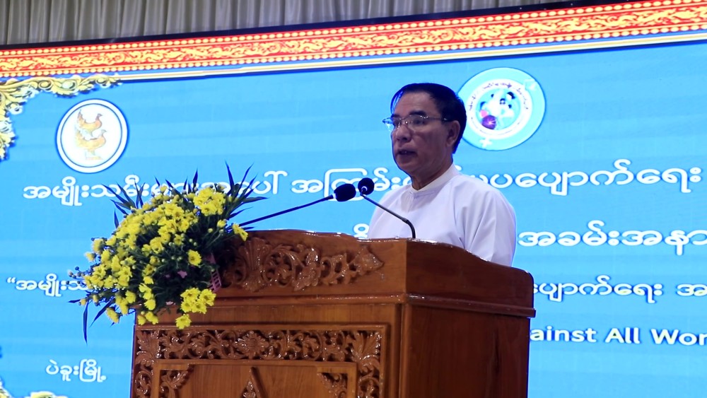 First, Bago Region Chief Minister U Myo Swe Win stated that November 25 has been designated as the International Day for the Elimination of Violence Against Women. The period from November 25 to December 10 is designated as the International 16 Days of Activism Against Gender-Based Violence, which is commemorated annually. In the present era, with the rapid advancement of digital technology, there is a misuse of this progress, targeting vulnerable and less knowledgeable individuals to exploit them as victims for personal gain. In incidents of violence against women, the use of digital technology has increased such violence. Therefore, the Chief Minister urged everyone to work together to eliminate digital technology-based violence against women.