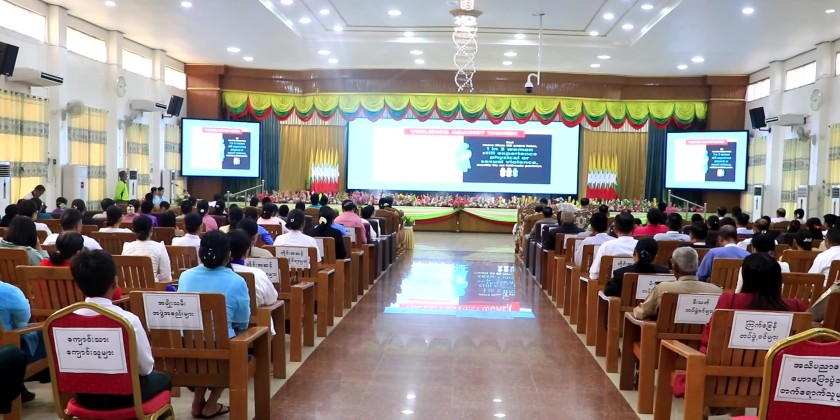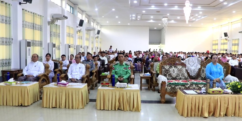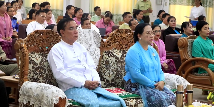 In the morning of December 8, the ceremony for the 16 Days of Activism Against Gender-Based Violence was held at the City Hall in Bago. The Region Chief Minister U Myo Swe Win and his wife attended and presided over the event.