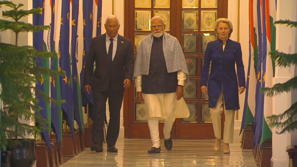 Indian Prime Minister Narendra Modi and the visiting European Union delegation are holding the 16th European Union–India Summit, underscoring the growing strategic and economic partnership between the two sides.