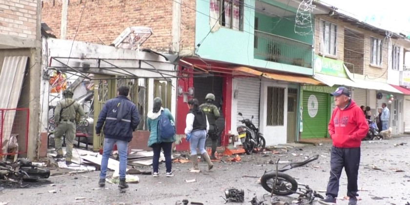 A seven-year-old girl was hospitalized with serious injuries, he said, and two police officers required treatment. Colombia is battling to extricate itself from six decades of armed conflict between leftist guerrillas, right-wing paramilitaries, drug cartels and government forces.