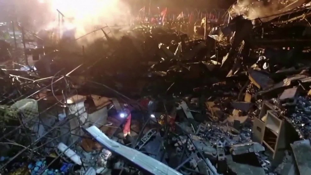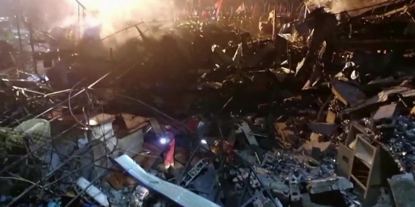 The accident happened at around 16:46 when a tank truck loaded with liquefied gas exploded near the exit of the expressway in the section, setting nearby vehicles on fire, and flattening nearby buildings. Rescue teams worked through the night to search for survivors. Officials say they will continue investigations into the cause of the explosion.