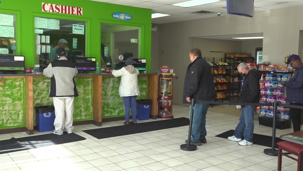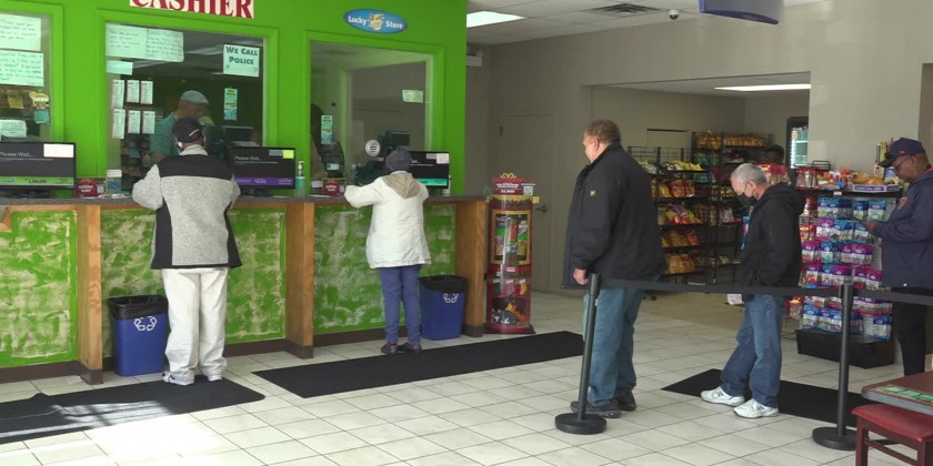 Hopeful ticket buyers waited in line Monday at the Lucky Mart on Chicago's South Side. The store is known as a 'lucky' store thanks to being recognized by Illinois Lottery officials as a place that's sold the most winning Powerball tickets in Illinois this year.