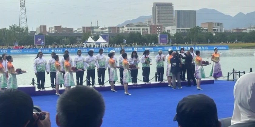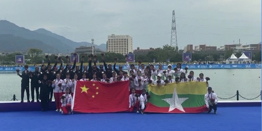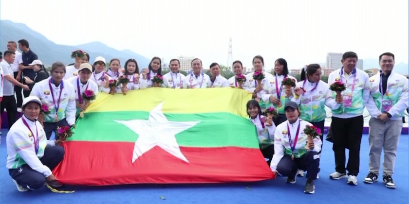 The 19th Asian Games is being held in Hangzhou, China starting from 23rd September to 8th October. At the 500 meters women Chinese traditional dragon boat racing event, Myanmar athletes won a bronze medal with a time of 2 minutes and 24.890 seconds.