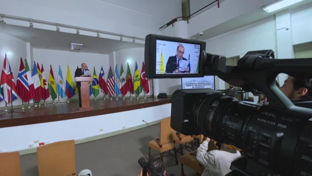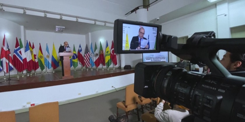 At the end of a summit in Bogotá on Venezuela's political crisis, Colombian foreign minister says the delegations from 20 countries, including the United States, support easing sanctions against the Venezuelan government if it commits to free and transparent elections, with guarantees for the country's opposition parties.