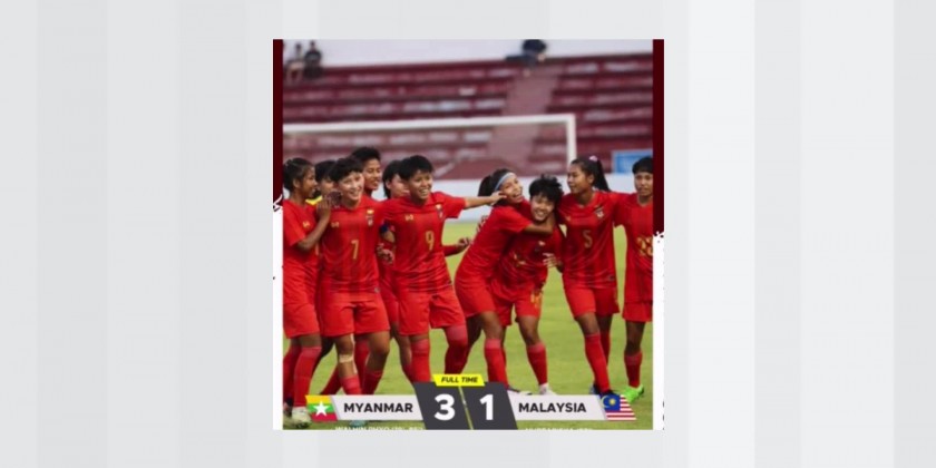 The Myanmar squad defeated both Cambodia and Malaysia in the group matches, successfully qualifying for the second stage. The Myanmar Team took the lead in the 19th minute of the game with a goal scored by Wai HninPhyo, but in the 57th minute, Nufa Sari scored an equalizer for Malaysia. The Myanmar squad tried to win the match, and Yin Loon Eain in the 80th minute and Wai HninPhyo in the 85th minute scored the winning goals. In the group matches, the Myanmar team beat the Cambodian team 1-0 and the Malaysian team 3-1.