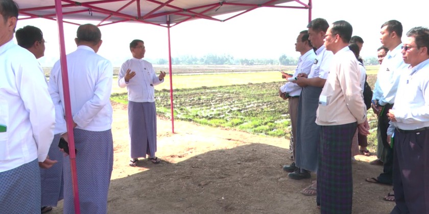 The Union Minister and Deputy Ministers then presented 43 Research Excellence Awards. Additionally, officials presented honorary gifts to officers and staff members who will retire in 2026 upon reaching the age of 62. After the ceremony, the Union Minister traveled to the Nay Pan-La Pan mechanized farmland in Sein Sar Pin Village, Zeyathiri Township. He inspected the cultivation of summer paddy and met with local farmers to provide encouragement and support.