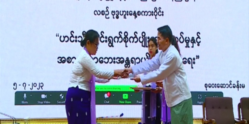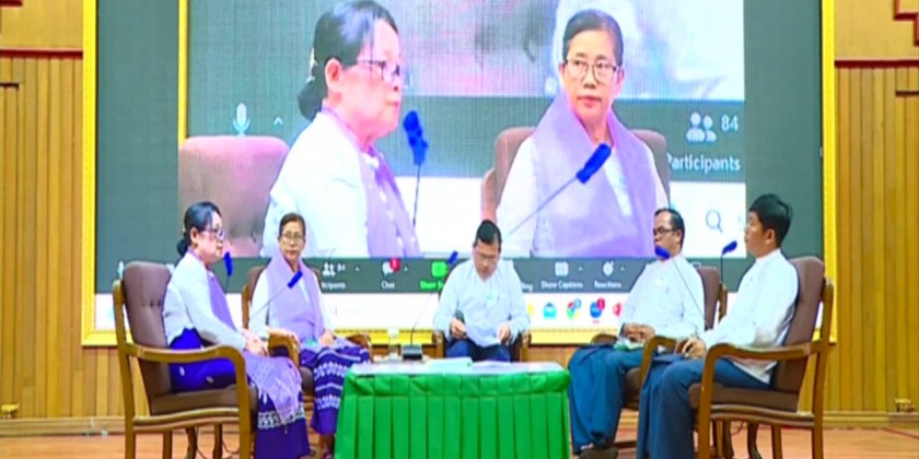 The Wednesday talk is held, with the aim with the aim of finding solutions for technology requirements and difficulties faced in agricultural practices. The event was held with the attendance of Union Minister for Agriculture, Livestock and Irrigation U Min Naung, Deputy Minister Dr. Tin Htut, Premanent Secretary, Directors General and officials as well as the officials from other region and state who joined the event via an online system.