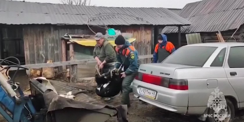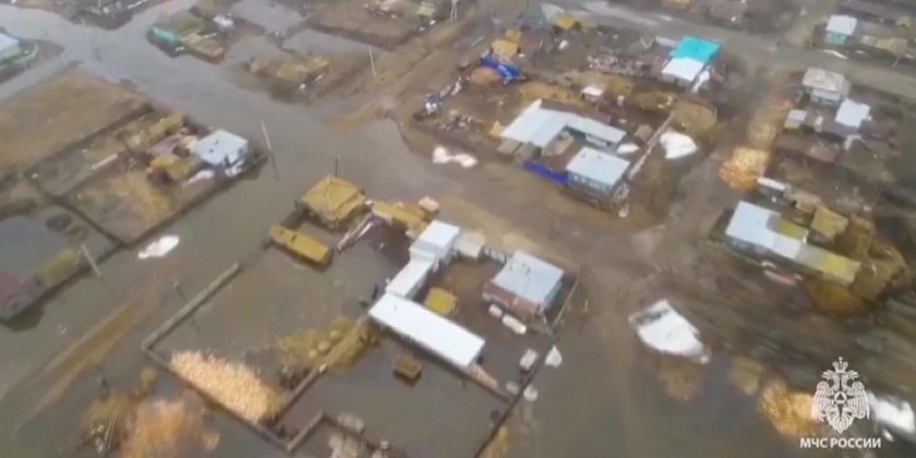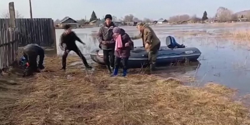 Emergency workers use inflatable boats and specialist vehicles to evacuate residents from flood-stricken areas of Russia near the country's border with Kazakhstan, after fast-melting snow and ice caused rivers to surge.