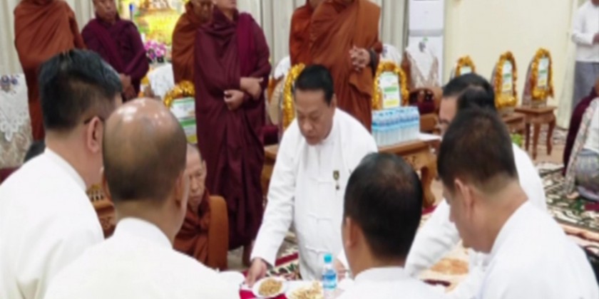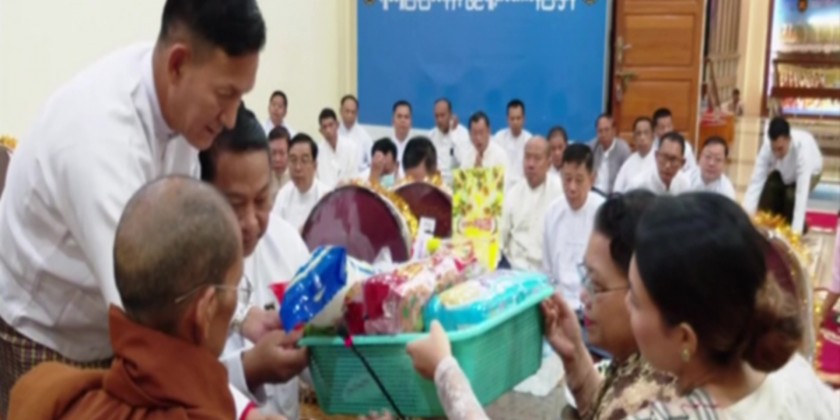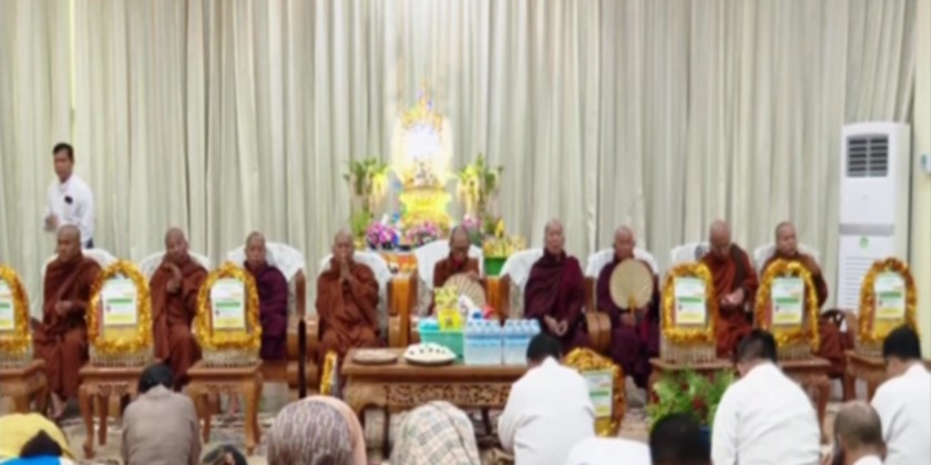 During the celebration at the ministry, the Union Minister and party offered morning meal to members of the Sangha, took five precepts, offered offertories, listened to sermons delivered by the Sangha and shared the merits gained.