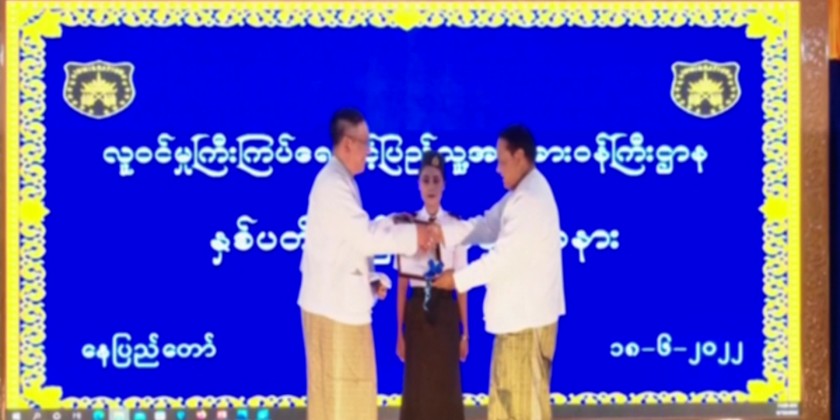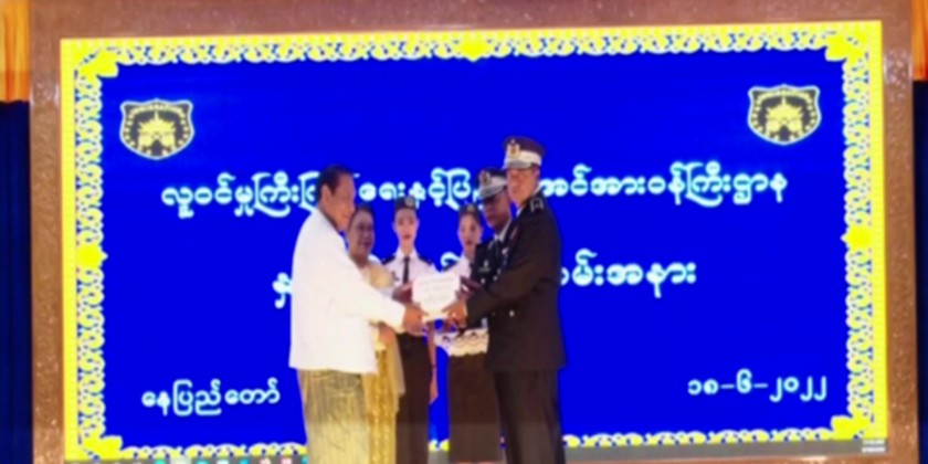 The Union Minister and officials presented certificates of honour and cash awards to outstanding officers and staff and outstanding family members of the officers and staff – education stipen was also provided. The Union Minister and wife also donated 5 million Kyats for the ministry’s education foundation.
