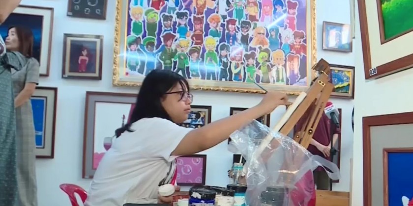 The displayed paintings are the creations of the trainee children who have been trained for about six months.