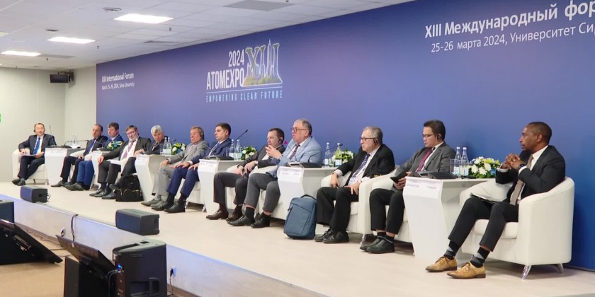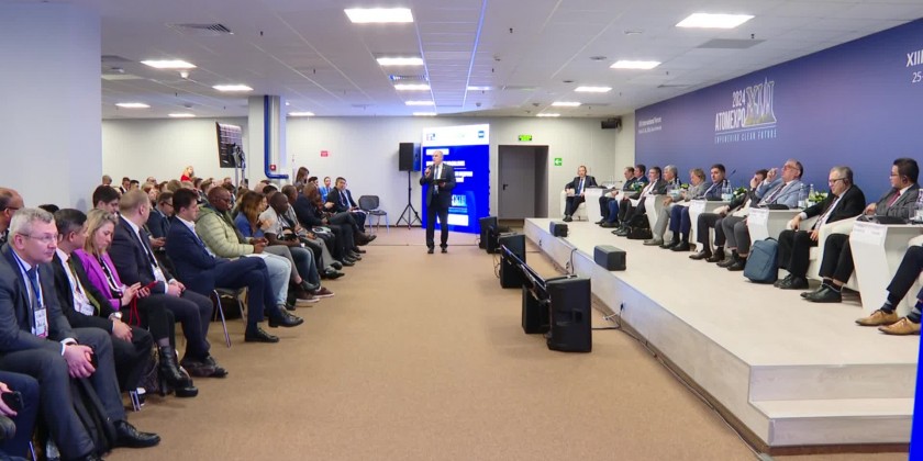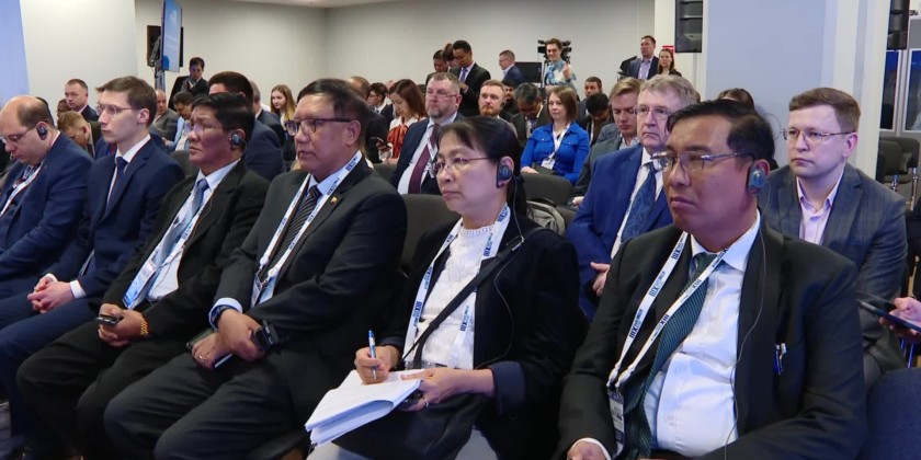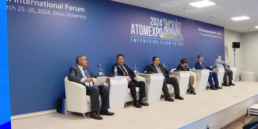 Myanmar delegation led by Union Minister for Science and Technology Dr. Myo Thein Kyaw accompanied by Myanmar Ambassador to Russian Federation U Thit Lin Ohn attended and took part in the discussion at the second day of XIII International Forum ATOMEXPO 2024 on 26th March.