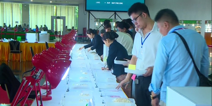 The base price of the pearls is set in US dollars. Foreign buyers can pay in US dollars, euros, yuan, Thai baht or other currencies accepted by the Central Bank of Myanmar, while local buyers may pay in foreign currencies or kyats. Looking ahead, on the third day of the exhibition, lots 141 to 280 will be available for sale to local and international gem merchants.
