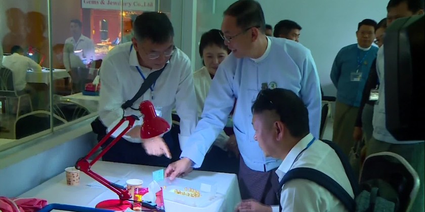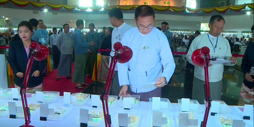 The event was graced by the presence of Patron of the Myanmar Emporium Central Committee Union Minister for Natural Resources and Environmental Conservation U Khin Maung Yi. Upon arrival, the Union Minister inspected the pearl sets, the announcement of winning bids and jade lots, gems lots and jewelry stores at the Mani Yadana Jade Hall and provided necessary instructions to officials.