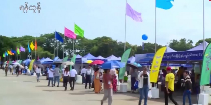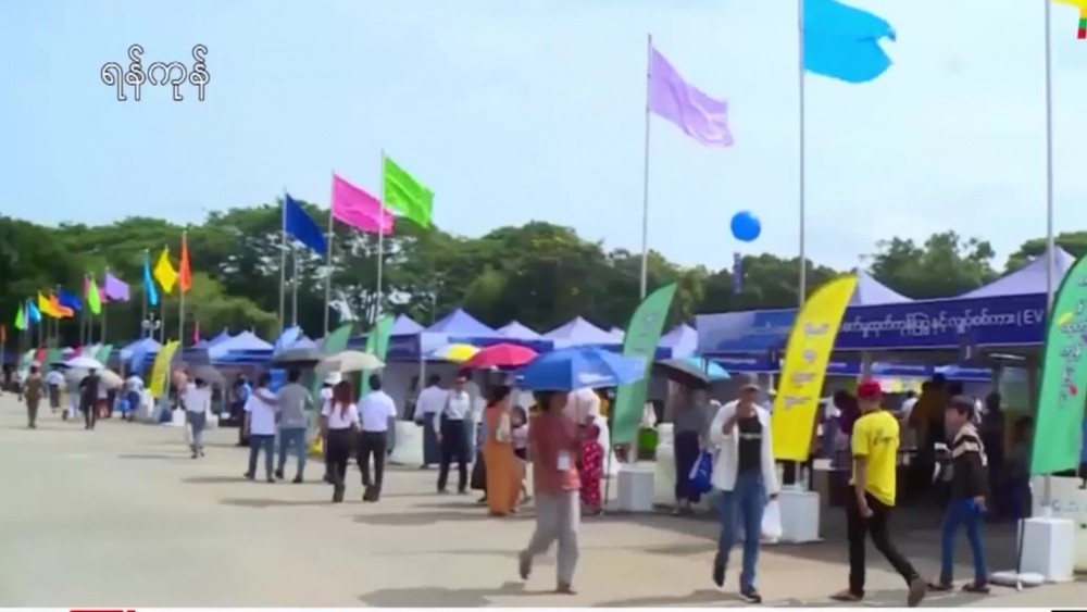People flocked to the second day of 2023 monsoon Season Expo, Industrial Product Exhibition and Electric Vehicle (EV) Exhibition held in the People’s Square, Dagon Township, Yangon Region on 5 August.