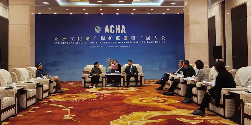 The Deputy Minister and the delegation arrived in Chongqing, China, on November 25. On November 26, at 10:00 AM, they attended a meeting with ACHA officials led by Deputy Director-General Mr. Xie Bing from China's National Cultural Heritage Administration and the Executive Secretary-General of ACHA. In the afternoon, they visited the China Three Gorges Museum.