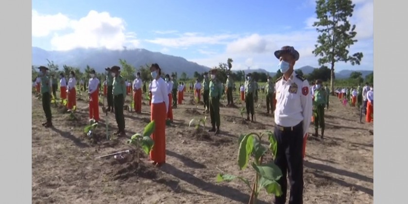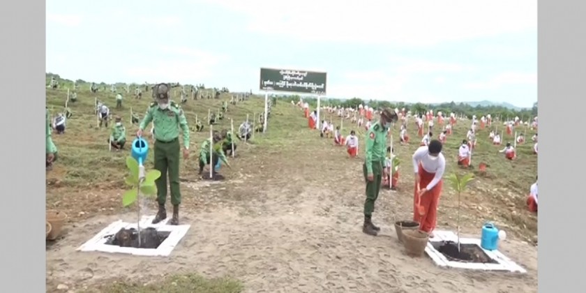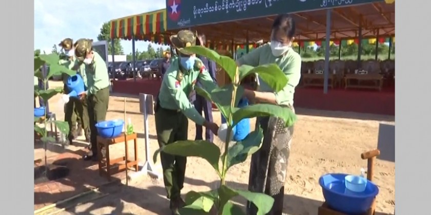 Families of the Office of Commander-in-Chief (Army, Navy and Air) held 2nd monsoon tree planing ceremony 2022 near Yezin dam in Nay Pyi Taw Zeyathiri Township on Monday with the attendance of Chairman of the State Administration Council Commander-in-Chief of Defence Services Senior General Min Aung Hlaing.