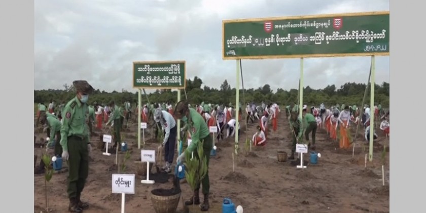 Trees absorb toxic, gas and carbon dioxide caused by humans and animals and release oxygen for breathing. The Senior General called on Tatmadawmen to actively grow tree annually in order to conserve the natural environment and raise public awareness and participation of the people, which is part of the three main duties of the military service personnel.