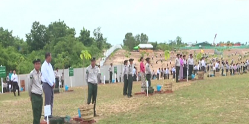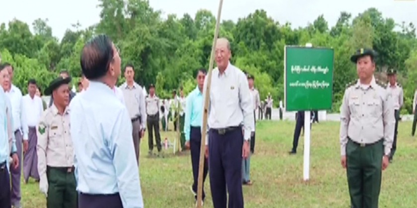 Later, the Senior General and wife Daw Kyu Kyu Hla planted Linlun tree at the designated place. After that, Vice Chairman of the SAC Deputy Prime Minister Vice Senior General Soe Win and wife Daw Than Than Nwe, Secretay of the SAC, Joint secretary, Council members and wives, Union Level personnels, Union Ministers, departmental officers and staffs, students from the University of Forest and Environmental Science and basic education schools planted saplings respectively.
