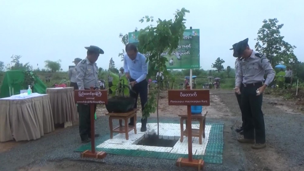 The monsoon season second collective tree planting ceremony of the Ministry of Natural Resources and Environmental Conservation was held at Plot No (14) of Yan Aung Myin Forest Reserve in Lewe Township of Union Territory Nay Pyi Taw in the morning on July 31st and attended by Union Minister U KhinMaungYi, Deputy Minister U Min Thu and officials.