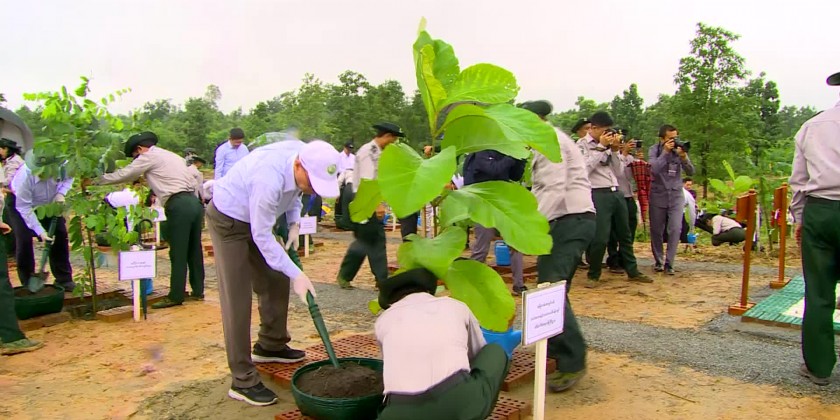 First, the Union Minister planted sapling of Badauk tree at a designated place and the Deputy Minister and attendees also planted the saplings at the specific places. Then, the Union Minister encouraged the attendees who are planting the saplings. During the tree planting ceremony, a total of 3000 saplings of 9 species under the feature of mass campaign.