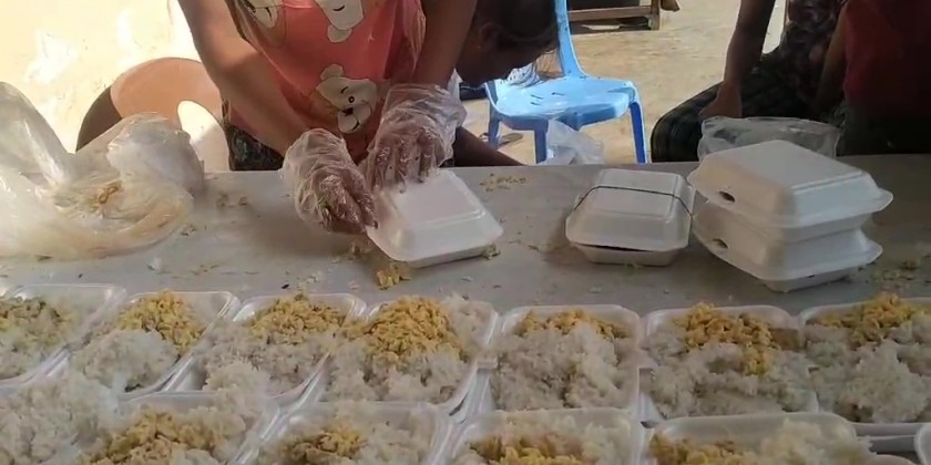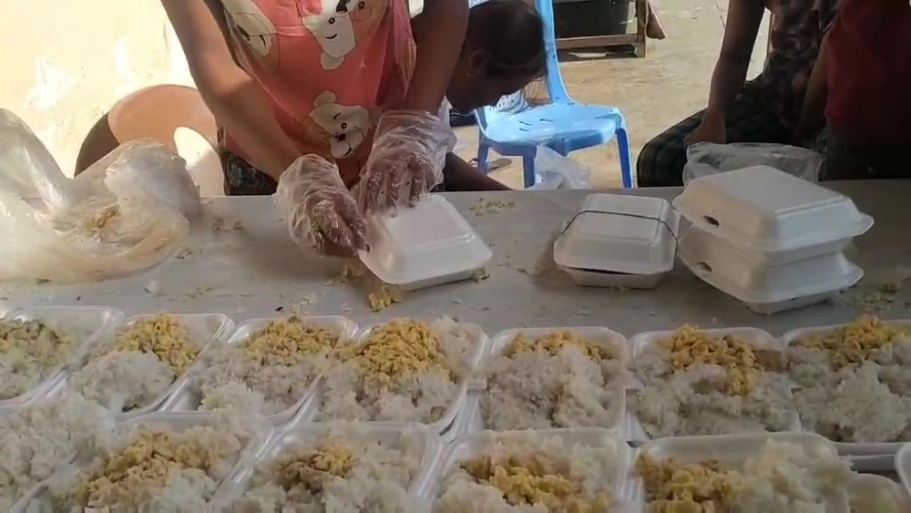 The SKY NET for People, Myanmar Licensed Contractors Association, Myanmar Licensed Contractors Association (Rakhine State), Myanmar-China Buddhism and Cultural Exchange Association, Myanmar-India-China International Cooperation & Economic Development Association, Myanmar Licensed Contractors Public Co., Ltd and Inter-Faith Friendship Organization are jointly carrying out the daily donation of charity feast in Rakhine State.
