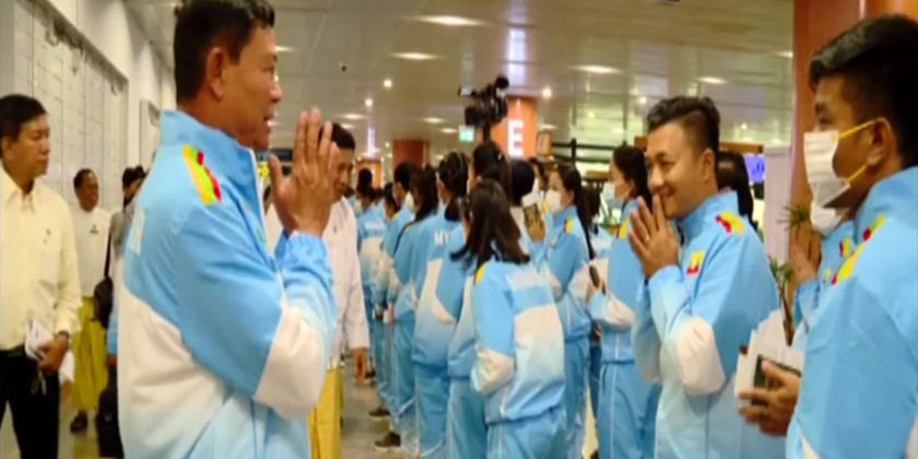 Myanmar sports contingent left for Cambodia on Wednesday to take part in the 32nd SEA Games. Union Minister for Sports Youth Affairs U Min Thein Zan in his capacity as the Myanmar Olympic Committee Chairman led the Myanmar team to attended as a invited guest at the SEA Games from 5th to 17th May.