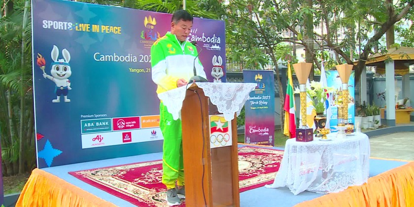 Director General, Tun Myint Oo, Department of Sports & Physical Education said "I’ll lead Myanmar Athletes who will participate in 32nd SEA Games to Cambodia. Today’s ceremony is part of the Torch Relay tour for the SEA Games in Myanmar. The Torch flame is carrying among 11 ASEAN countries and we made it successfully. For the upcoming SEA Games, Myanmar will compete in 19 kinds of sports. "
