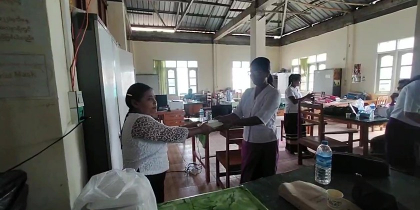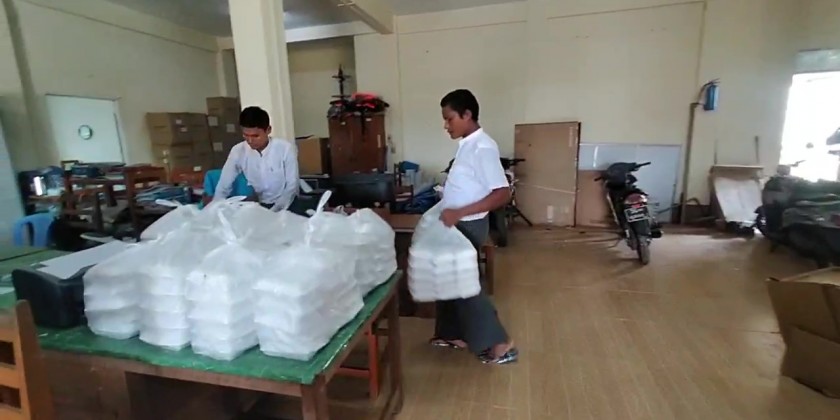 In Sittwe Township area, in the morning of the 1st of July, 500 boxes of vegetable biryani and 6,000 boxes of rice and canned fish curry donation was made in places including the Fire Services Department, Sittwe Station, Forest Department, Myanma Posts and Telecommunications Office, monasteries, governmental offices, schools, Nursing Training School, NaTaLa Orphanage, OhnTaw Village and KanKawKyun Village as well as for volunteering groups who are making efforts for rehabilitation works in the extremely severe cyclonic storm-affected areas.