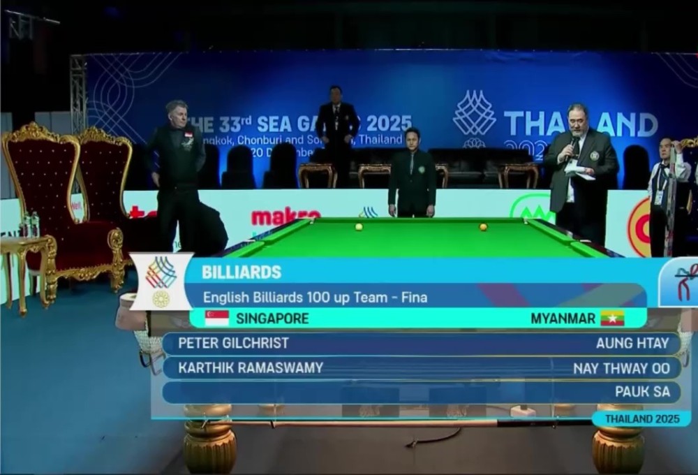 Myanmar Team won gold medal at the final of the billiards and snooker event in the 33rd SEA Games, being held in Thailand on Sunday. Myanmar played against Singapore team at the final event and secured the third gold medal for the country. The Myanmar team, comprising Pauk Sa, Nay Thway Oo and Aung Htay, played against Indonesia and Thailand in the group stage and semi-final, and defeated Singapore in the final.