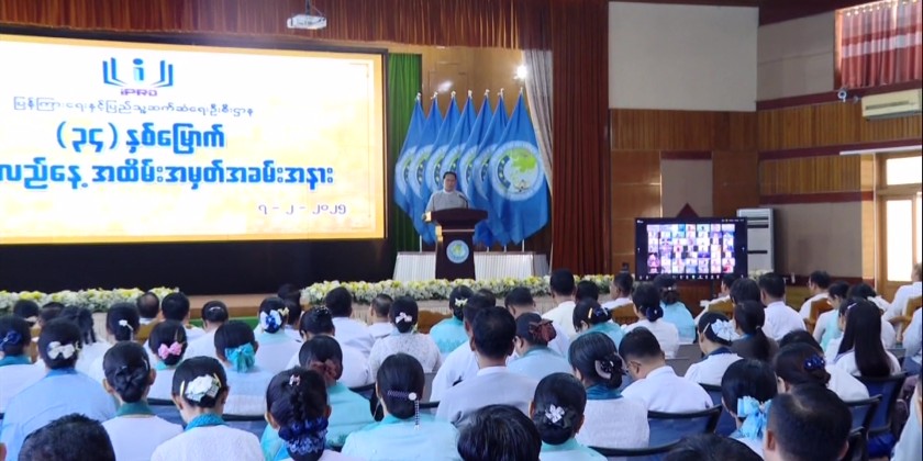 First, a video clip on the work implementations of IPRD during 2024 was shown. Then, the Union Minister delivered a speech, stating that it has been 34 years since IPRD has been standing strongly as a department, thanks to the responsible departmental officials and staff. It could be said that 2024 has been a significant year for IPRD as it could successfully hold grand ceremonies such as the Myanmar Motion Pictures Awards for 2023 in February 2024, the nationwide campaigns for Libraries Development and Promoting Reading Habits under the guidance of the head of state.