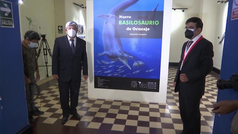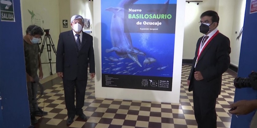 Fossilized remains of an Ocucaje Basilosaurus, a cetacean that inhabited the seas of Peru millions of years ago, were presented for the first time at the Museum of Natural History of the Universidad Nacional Mayor de San Marcos.