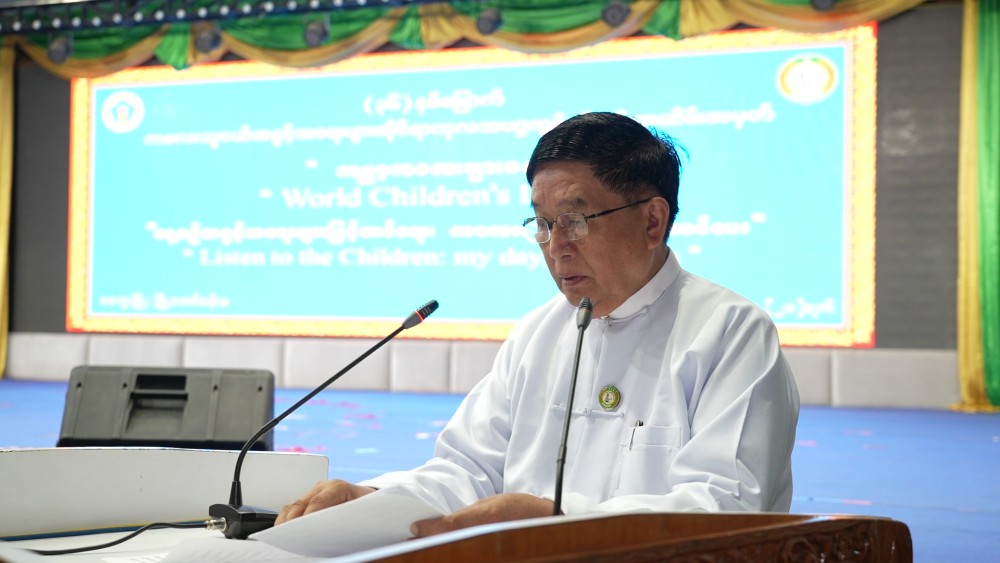 First, at the 36th World Children's Day commemoration ceremony, Region Chief Minister U Tint Lwin, in his opening address, stated that it is extremely necessary for parents/guardians, teachers, the public, and the Government to provide guidance at various levels to ensure that every child enjoys all rights equally, without discrimination, becomes well-mannered and virtuous individuals, and is prevented from going astray. He urges the members of the Region, District, and Township-level Committees on the Rights of the Child to widely disseminate knowledge about child protection activities among the public, including parents and guardians, to take preventive measures, and to collaborate and work together in case any child-related issues arise.