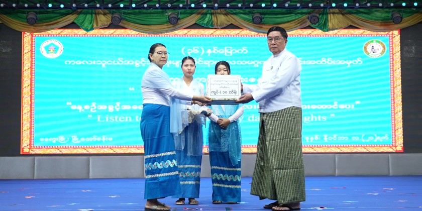 The ceremony to commemorate the 36th Anniversary of the United Nations Convention on the Rights of the Child, World Children's Day, was held at the Magway City Hall on November 20. Magway Region Chief Minister U Tint Lwin attended and delivered the opening address.