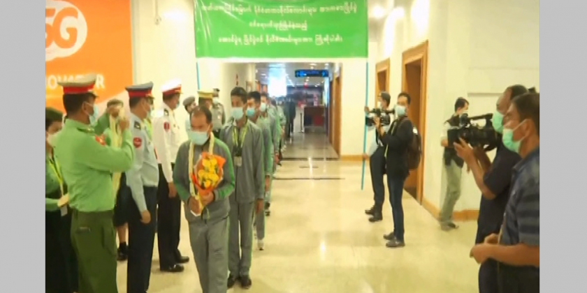 Winning the medals made the Myanmar Cadet Team rank 8th among 20 participating countries. The team returned from Russia, arrived at the Yangon International Airport and was welcomed by concerned officials.
