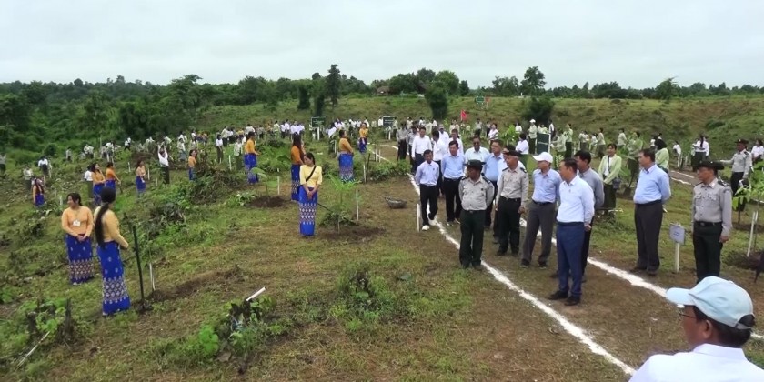 First, the Union Minister planted sapling of teak at the designated place and the Deputy Minister and attendees planted the trees. Next, the Union Minister oversaw the planting of trees by the attendees. During the ceremony, a total of 3,000 saplings of 13 wood species.